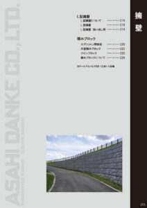 擁壁には施工方法によって様々な種類があり、旭ダンケでは練積み式のツインブロック・スプリットン間知型や、片持梁式のL型擁壁など多彩な現場条件に適応する製品を製造しております。